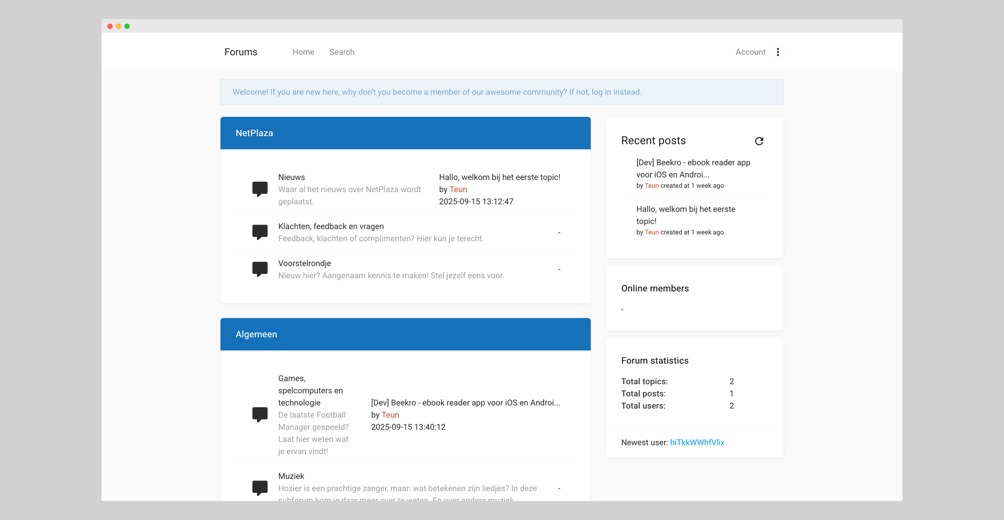 You can experience it yourself by going to forums.netplaza.nl. The Github repository is currently private, but will be made public soon.